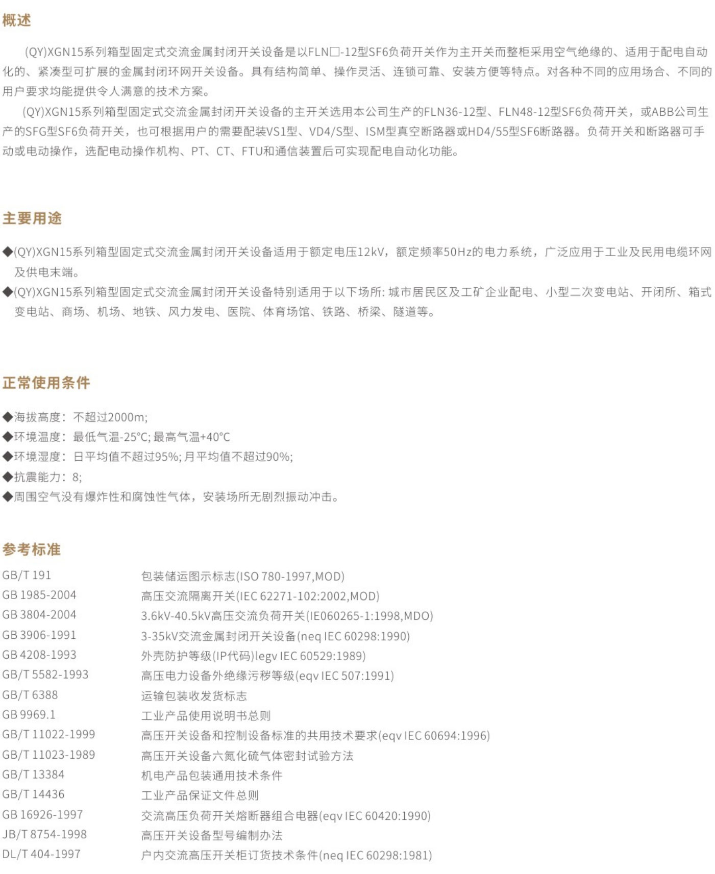 (QY)XGN15系列箱型固定式交流金属封闭开关设备