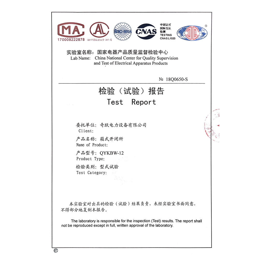 (QY)DFW-12/T630-20户外电缆分支箱 检验报告