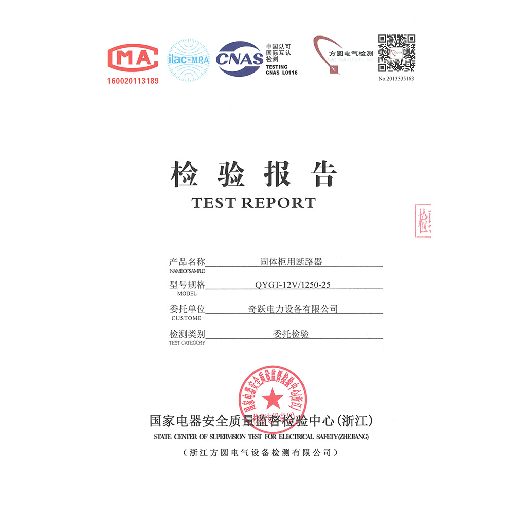 QYGT-12V/1250-25固体柜用断路器 检验报告