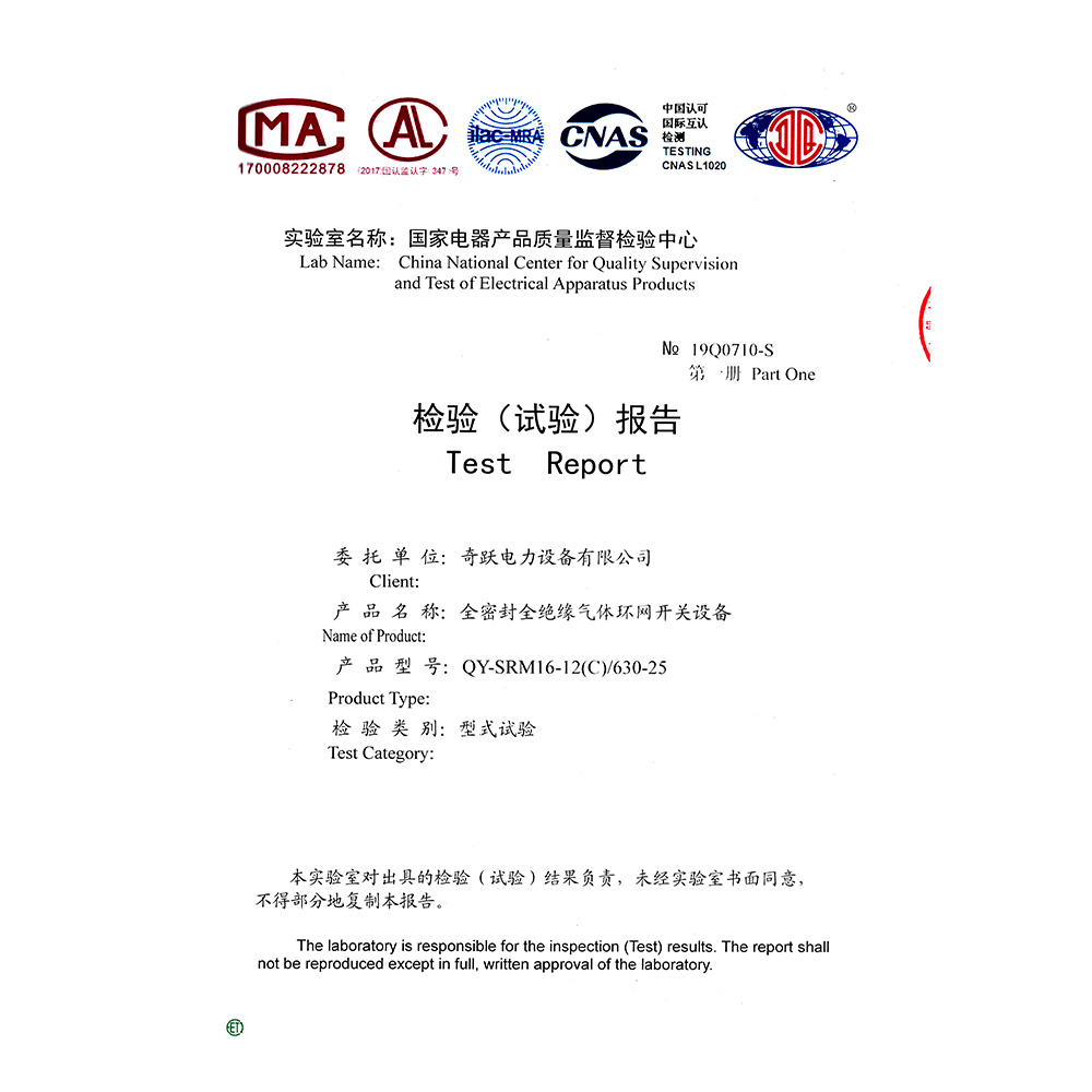 QY-SRM16-12(C)/630-20气体绝缘交流金属封闭电气开关设备 检验报告