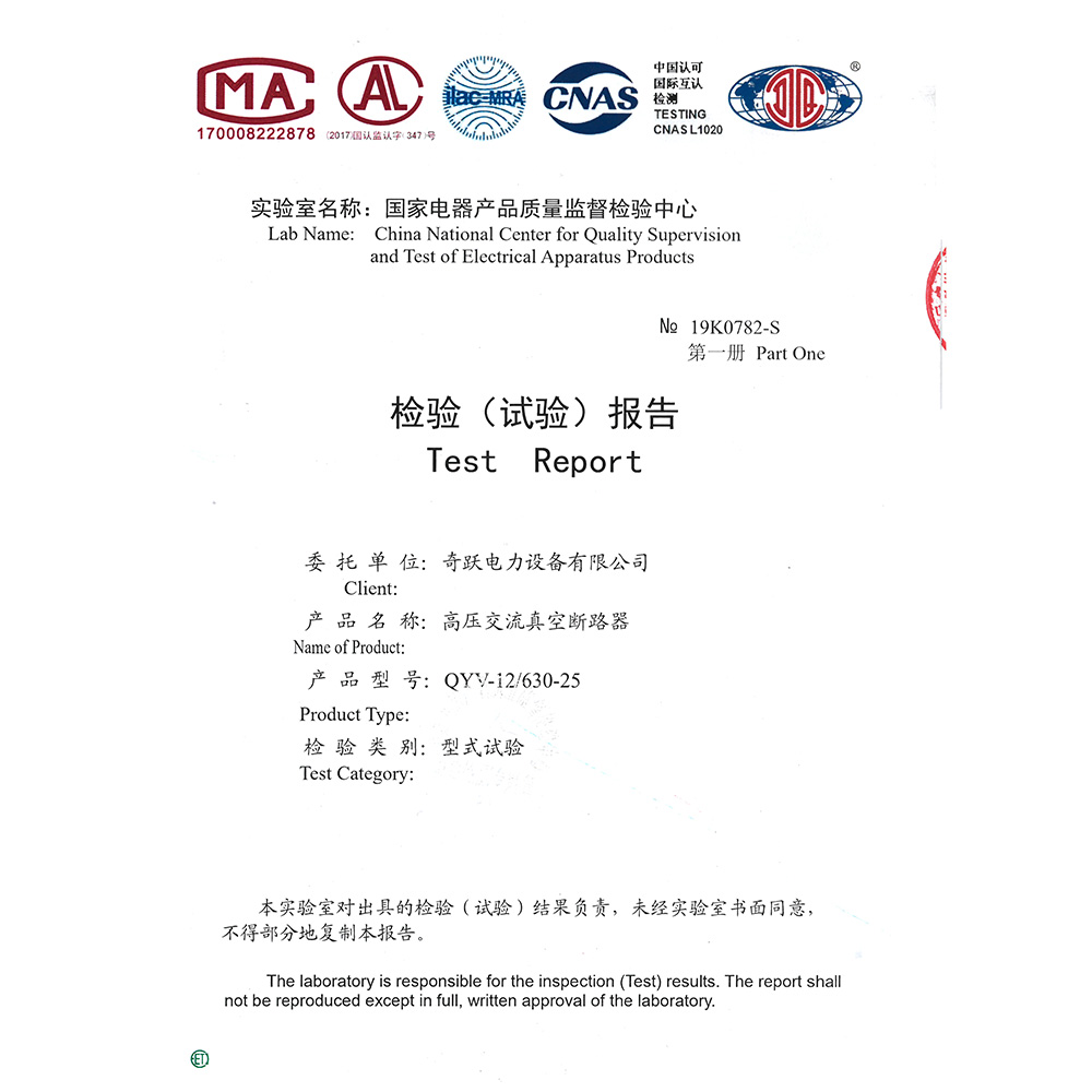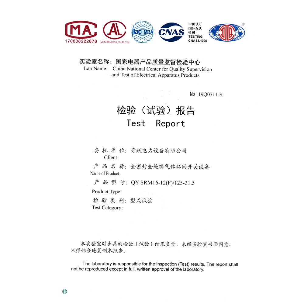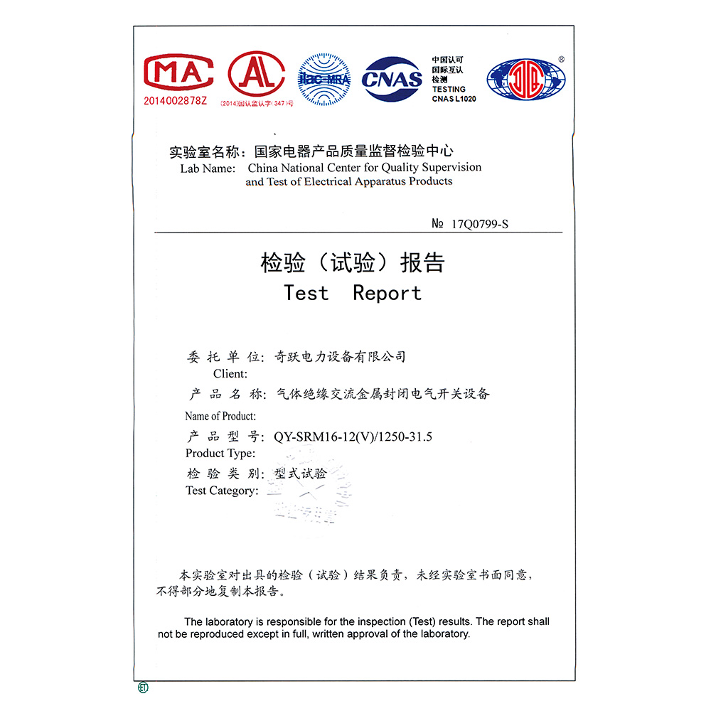 QY-SRM16-12(V)/1250-31.5气体绝缘交易金属封闭电气开关设备 检验报告