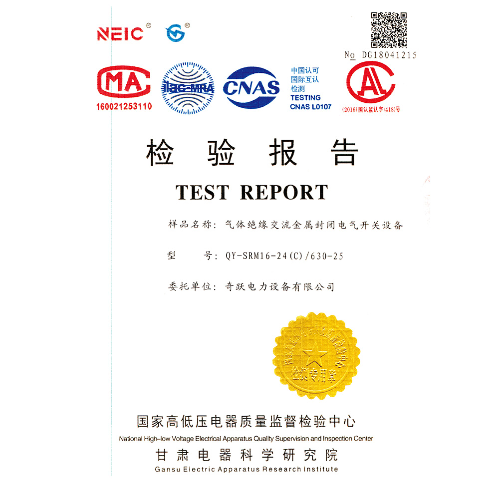 QY-SRM16-24(C)/630-25气体绝缘交流金属封闭电气开关设备 检验报告