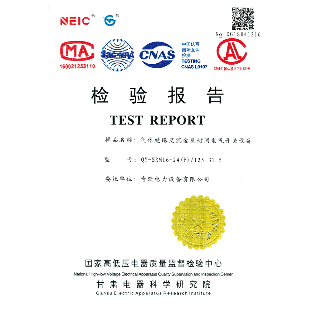 QY-SRM16-12(F)/125-31.5气体绝缘交流金属封闭电气开关设备 检验报告