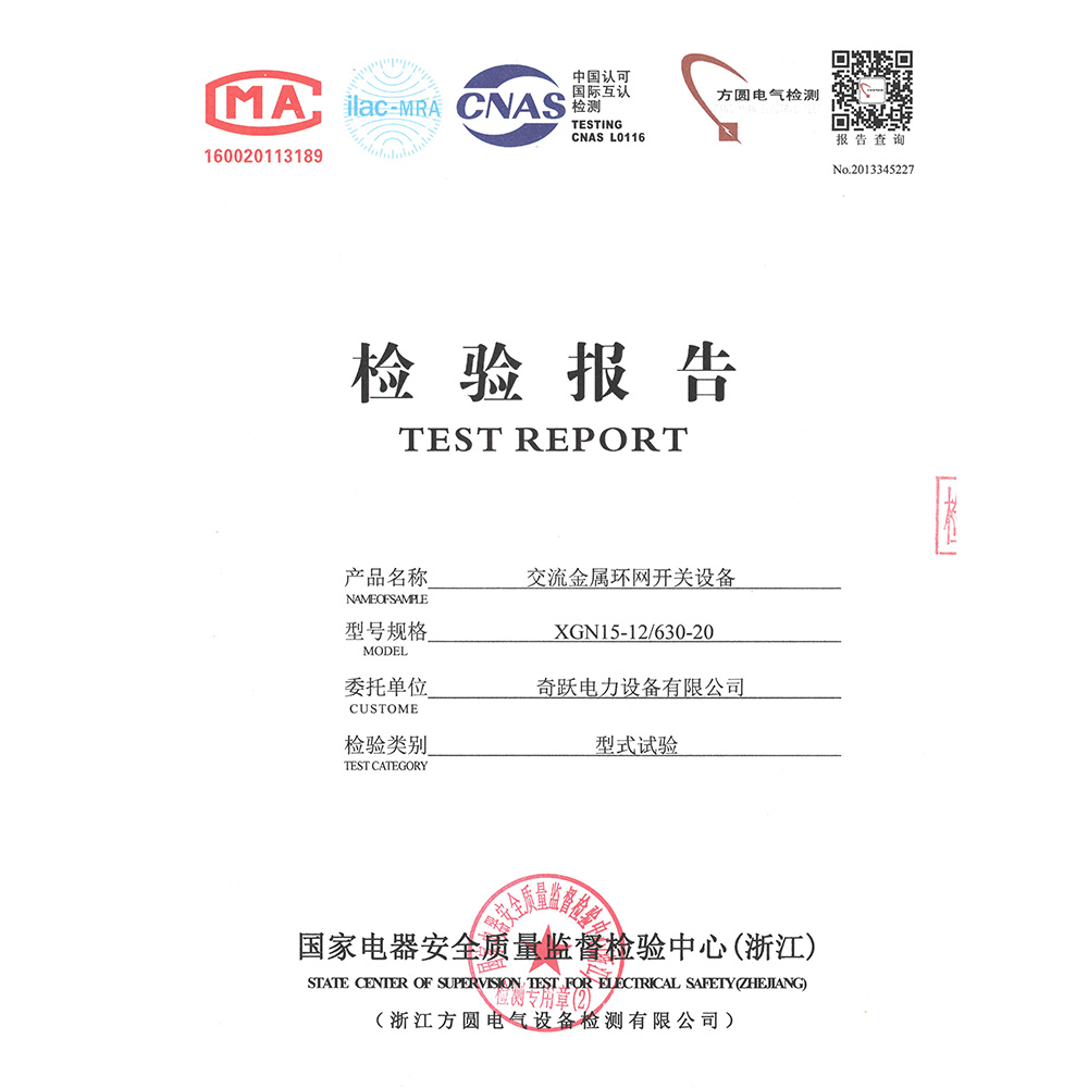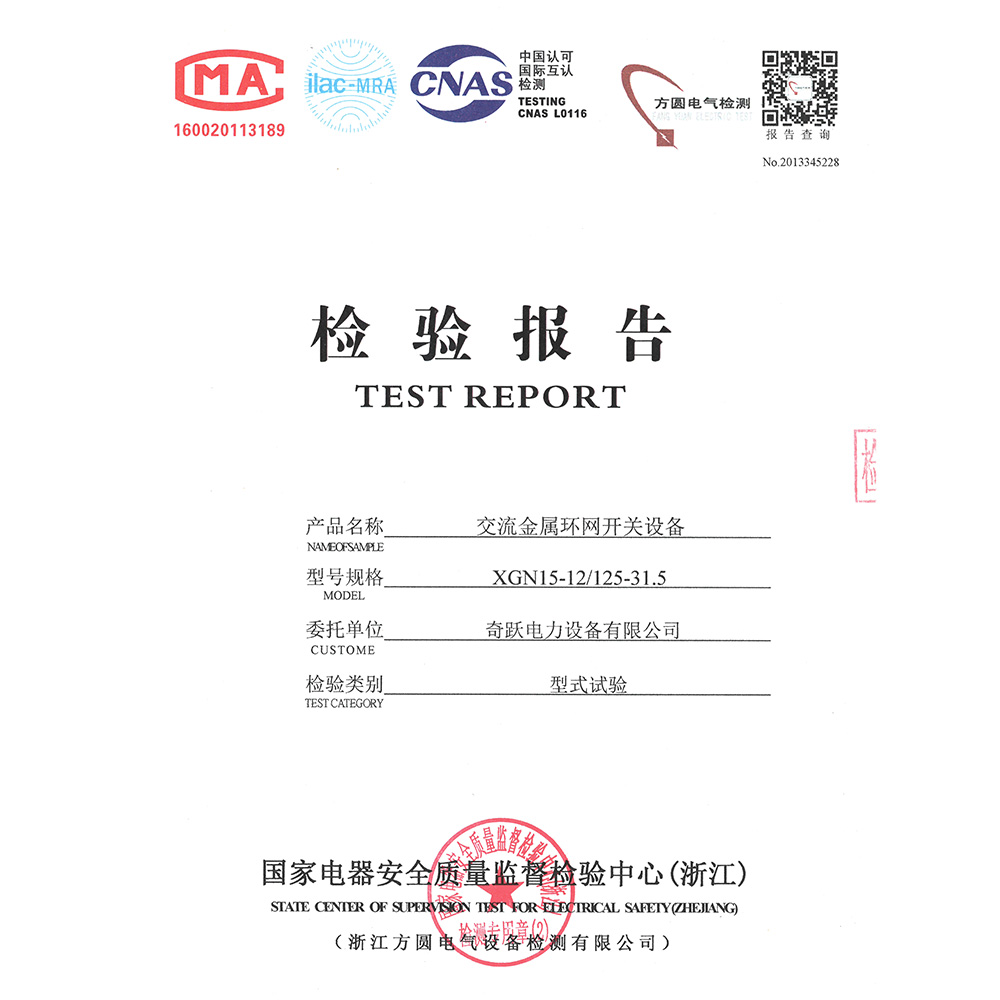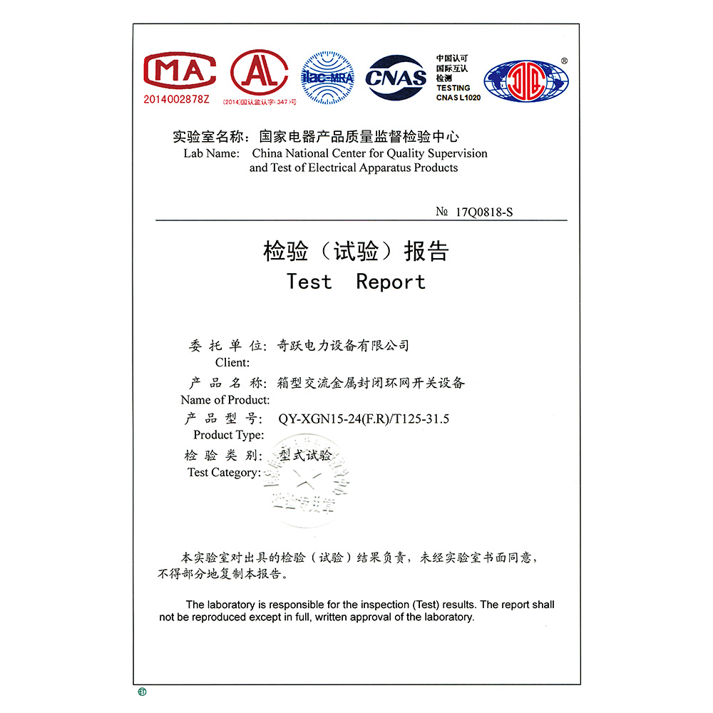 QY-XGN15-24(F.R)/T125-31.5箱型交流金属封闭环网开关设备 检验报告