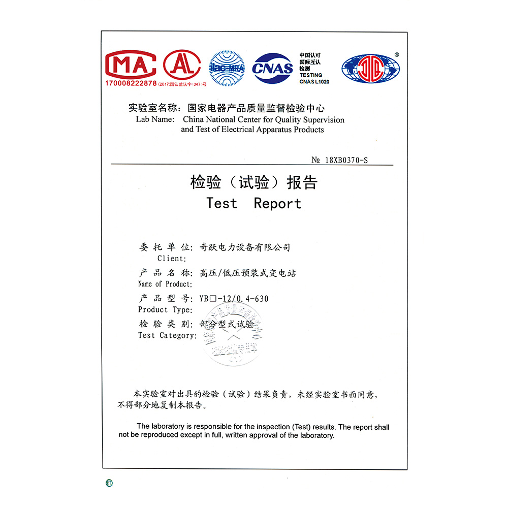 YB□-12/0.4-630高压/低压预装式变电站 检验报告